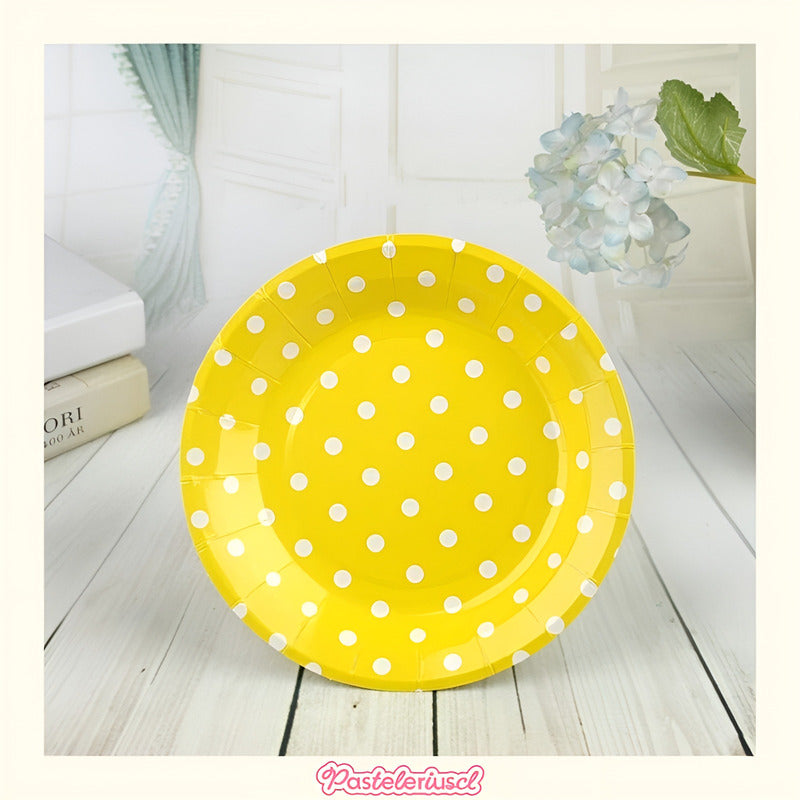 - Diseño de lunares de lámina dorada: este plato de papel y servilletas de fiesta está diseñado con lunares dorados, que es muy elegante y hermoso con colores brillantes y atractivos, creo que a tus invitados les gustará mucho este diseño