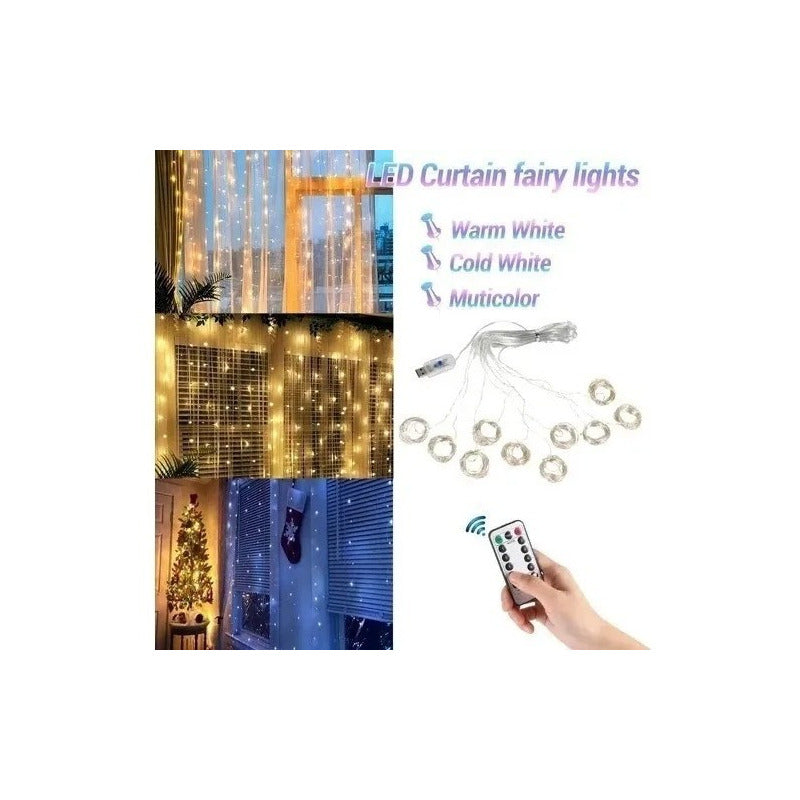 Luces Alambre Navidad Usb Cortina
