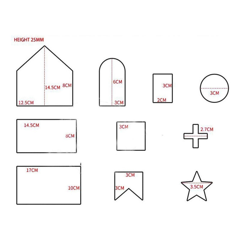 -- El kit de cortadores de galletas de casa de jengibre viene con 10 piezas construye algunas casitas y decóralas como quieras. Tienen un tamaño ideal para que los niños disfruten decorándolas. Nuestras casitas terminadas miden aproximadamente 13 cm x 17 cm x 17 cm.