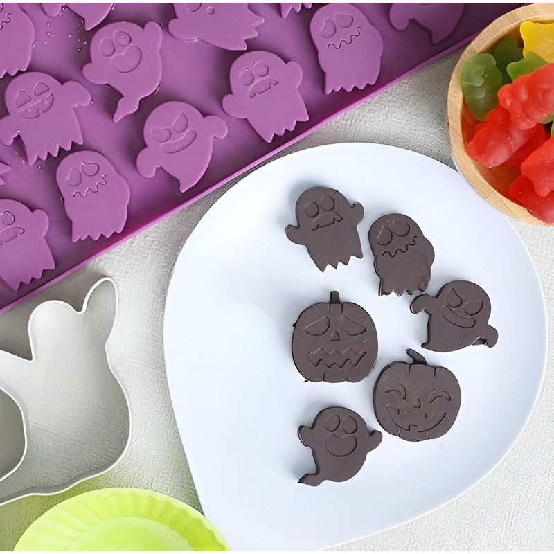 -Diseño: Formas diferentes de calabazas y fantasmas para Halloween. Crea una vida más divertida, perfecto para gomitas, galletas, chocolate, pudín, gelatina y aperitivos lindos.