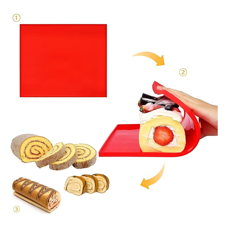 - Fácil de enrollar y fácil de desmoldar (solo retira del horno y deja enfriar ligeramente antes de desmoldar). Tiende a haber menos bronceado en la parte inferior de los productos horneados y menos potencial de quemar.