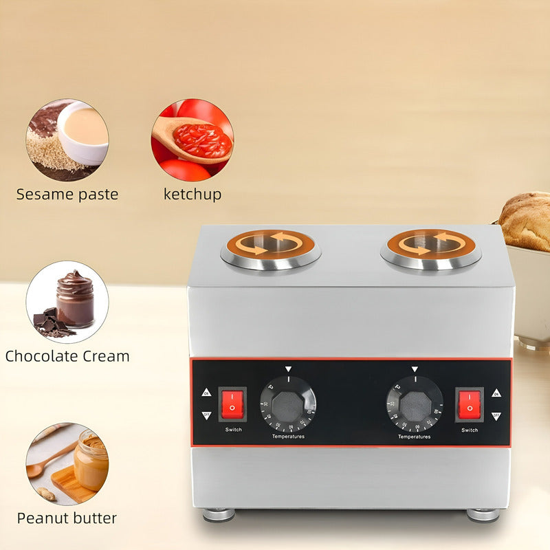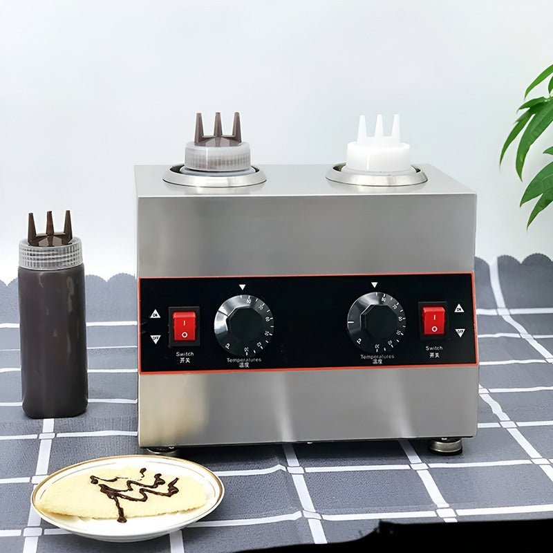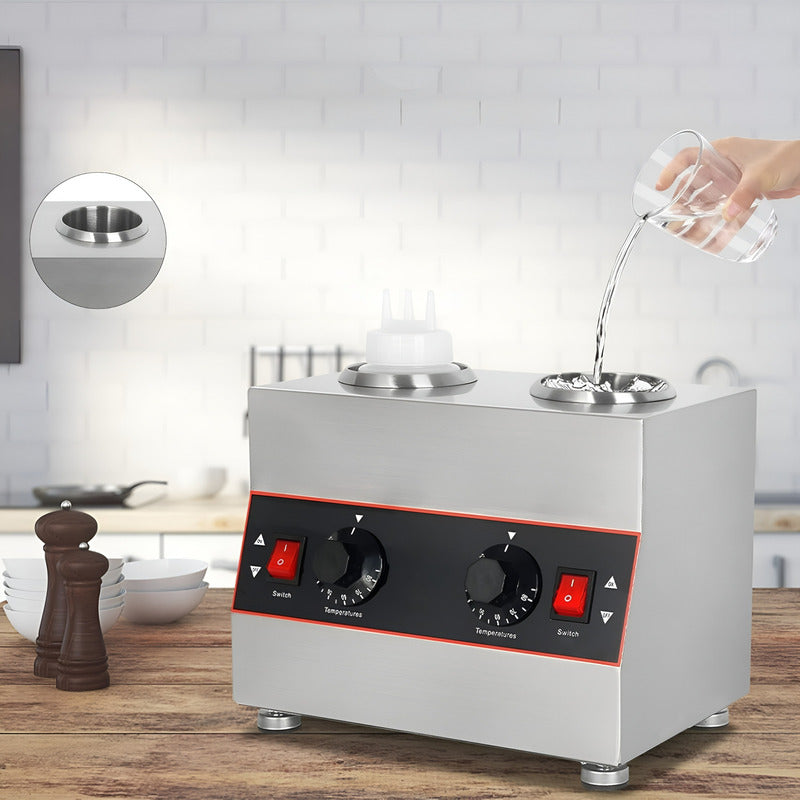 - Tenga en cuenta que esta máquina se utiliza principalmente para mantener la temperatura de la salsa, pero no puede derretirla.
