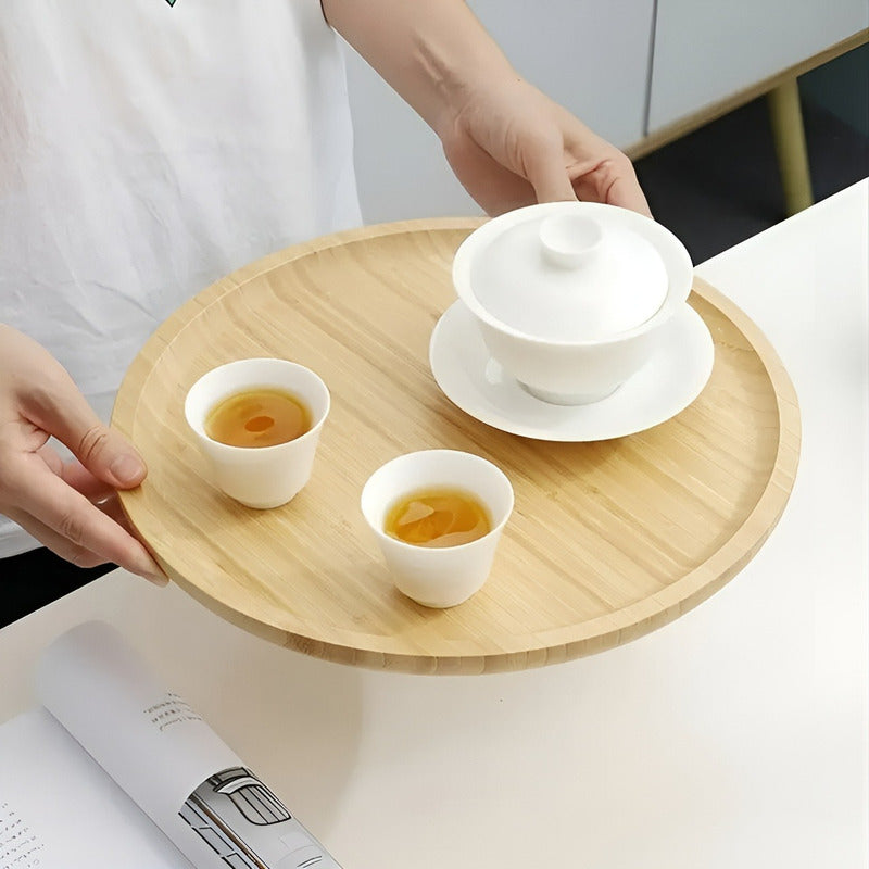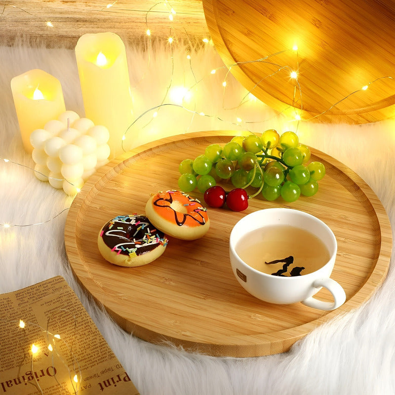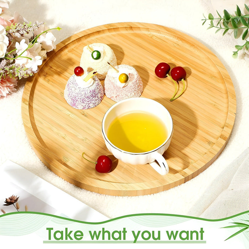 - Decorativa y práctica: la bandeja de bambú es redonda, suave y cómoda al tacto; el diseño de borde grueso te ayuda a sostener objetos y evitar que se caigan; la textura de bambú y el color del bambú te dan una sensación natural.