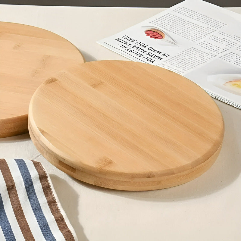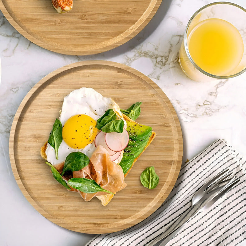 Bandeja Bambu Bandejas Para Servir Bandeja Redonda Mini 24cm Marrón Claro