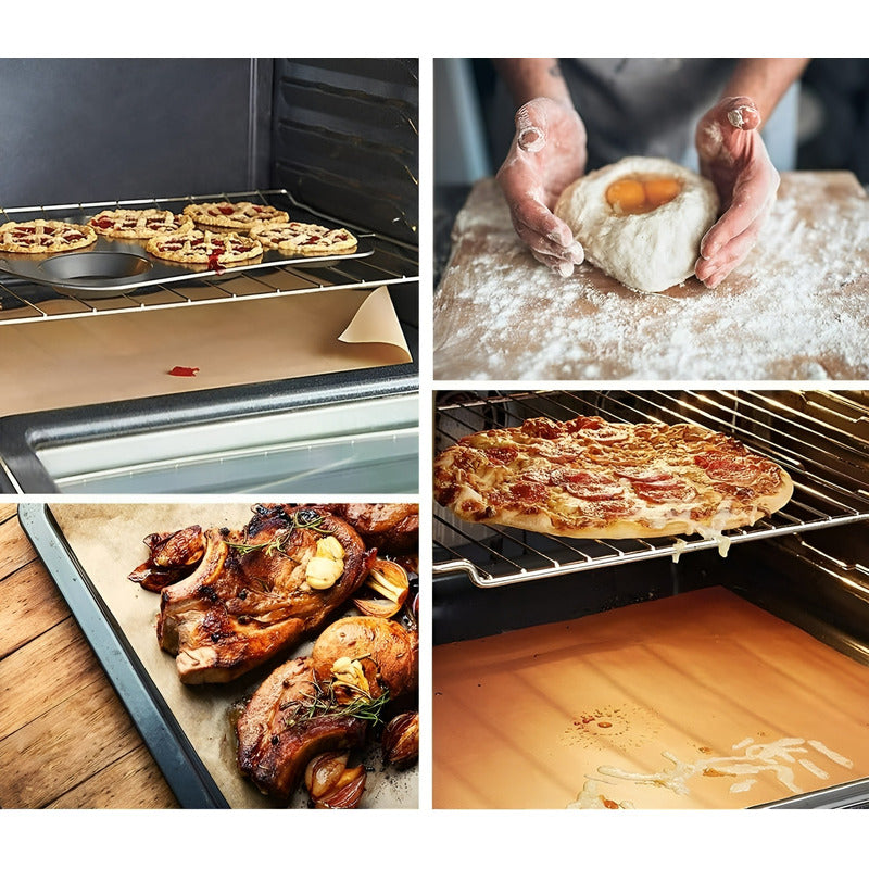 - Versátil: Esencial para la cocina. Nuestro tapete de teflón es imprescindible para hornear galletas, pasteles, macarons, pan, pizza, cupcakes e incluso sándwiches calientes. También es perfecto para freidoras de aire, prensas de calor de sublimación y como revestimientos de horno para el fondo del horno. Ya sea que seas un panadero profesional o un cocinero casero, nuestras laminas de teflón son una herramienta de cocina versátil y esencial.