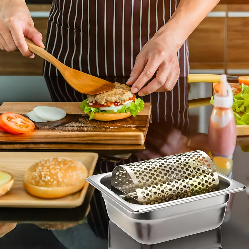 - Puede agregar mantequilla u otras salsas líquidas a este recipiente y usar el rodillo para untar la mantequilla de manera más uniforme en rebanadas de pan, bollos, hamburguesas, tocino, etc.