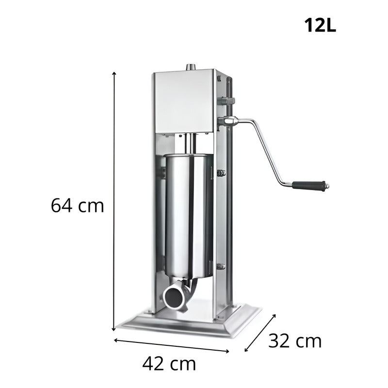 Embutidoras manuales: Embutidora 12L Marca: PASTELERIUSCL Profundidad: 32 cm Diámetro de los embudos: 1.6 cm,2.2 cm,3.2 cm,3.6 cm Cantidad de embudos: 4 Altura: 64 cm Embudos incluidos: Chorizo,Salchicha Incluye abrazaderas: Sí Condición del ítem: Nuevo Material: Acero inoxidable Modelo: Embutidora vertical Altura del paquete: 34 cm Largo del paquete: 71.4 cm Peso del paquete: 18320 g Ancho del paquete: 45.2 cm Características del producto: Sin vencimiento SKU: 111538 Embalaje del envío: Auto-despachable Capacidad en volumen: 12 L Peso: 16 kg Capacidad en peso: 12 kg Ancho: 42 cm